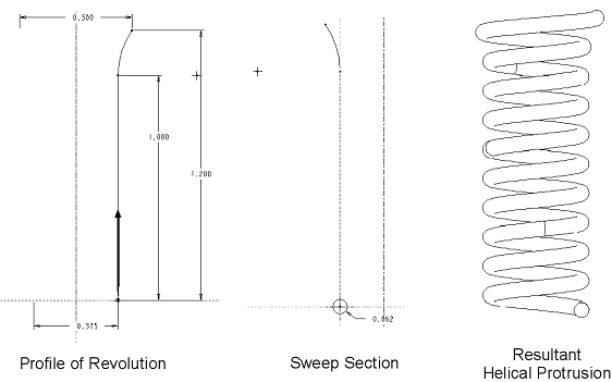 Helical swept features can also be created with a variable